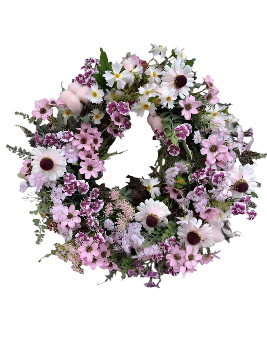 Этот чудесный веночек, исполненный мягкости и грациозности, способен преобразить любое помещение вашего дома, будь то спальня, гостиная или даже ванная комната. Легкий, воздушный и трогательно прекрасный, он наполнит ваш интерьер атмосферой тепла, радости и беззаботности, придавая пространству особое настроение покоя и умиротворённости. Искусно созданный руками мастера, этот уникальный венок выполнен из качественной натуральной лозы, украшен тонкими лепестками искусственно созданных цветов высшего класса и дополнен натуральным льняным полотном, дарящим ощущение естественной природы и гармонии. В центре внимания — очаровательные белые бутончики гвоздик сорта Барбатос, создающие неповторимый шарм. Их сопровождают пушистые облака нежно-белого хлопка, бутоны дикорастущего растения Буплерум, солнечные жёлтые полянецы полевых лютиков и хрупкие листья папоротника, добавляющие глубины и объёма всему творению. Будучи выполненным в единственной копии, этот венок станет незабываемым украшением интерьера и приятным подарком близким людям. Этот редкостный шедевр ручной работы подчеркнёт вашу индивидуальность и подарит дому особый характер.
