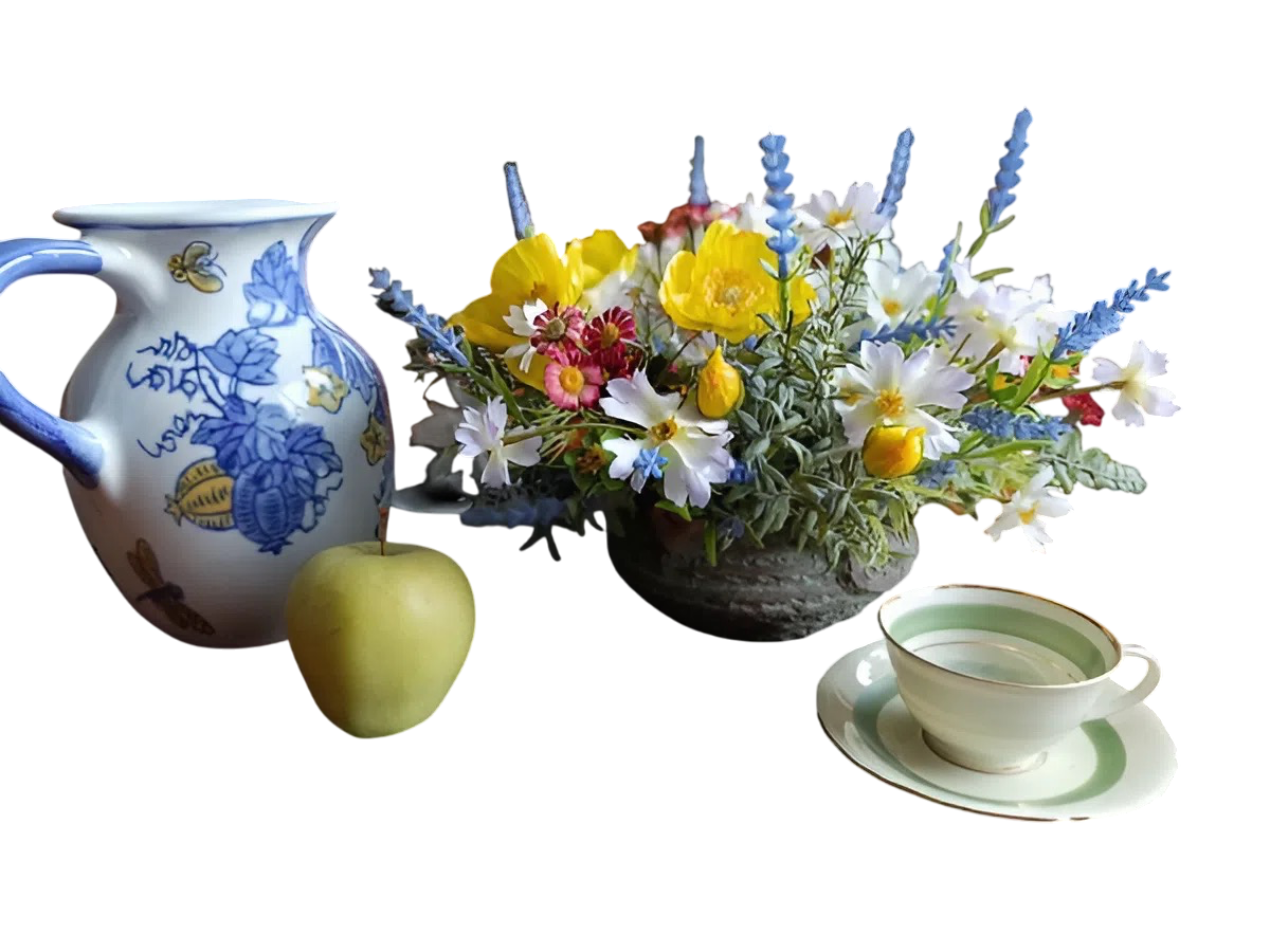 Маленькая солнечная радость в старинном итальянском кашпо ручной работы, словно привезённом из прошлого, исполненном мастером с любовью и теплотой. Эта изящная творческая находка наполнит ваш дом светом июльского утра, ароматом трав и лёгкостью тёплых солнечных лучей. Акварельные оттенки лета раскрываются в роскошном букете живых воспоминаний о свежем ветерке полей и цветущих лугах: нежнейшие голубые кисти лаванды шепчут о спокойствии природы, огненно-жёлтые маки горят ярким пламенем солнца, робко улыбаясь скромностью лепестков, волшебные дикорастущие лютики добавляют таинственности своим сказочным очарованием... Искусственные цветы высочайшего качества воплощают непревзойдённую красоту и свежесть живой природы, позволяя вам наслаждаться композицией бесконечно долго, каждый день погружаясь в атмосферу летней идиллии. Авторская работа уникальна и неповторима — создана специально для вас в единственном исполнении, несёт в себе частичку души мастера и способна стать драгоценным украшением интерьера вашего дома.