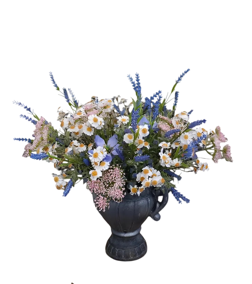 Перед вами истинное воплощение утончённой французской эстетики, которое способно тронуть сердце каждого поклонника волшебного региона Прованс. Эта великолепная композиция перенесёт вас мысленно во Францию, заставит почувствовать себя гостем старинного дворянского особняка или элегантного отеля, где каждая деталь пропитан ароматом истории и спокойствия. Её нежные оттенки, изысканная палитра и чарующая атмосфера позволят вам насладиться каждой минутой, проведенной рядом с ней, наполняя пространство теплом и уютом даже в самую дождливую погоду. Созданная вручную мастером своего дела, эта уникальная флористическая композиция выполнена исключительно из высококачественных искусственно изготовленных цветов. Центральное место занимают роскошные полевые ромашки, словно привезённые прямо из живописных полей Франции, окружённых ароматами свежести и гармонии. Гармония дополняется изящными веточками благородной лаванды, чей мягкий фиолетовый оттенок придаёт произведению особую глубину и очарование. Всё богатство оттенков собрано в специально разработанном уникальном кашпо, подчёркивая красоту композиций и создавая атмосферу подлинного французского стиля. Это произведение искусства существует лишь в одном экземпляре, повторить такую композицию невозможно, поскольку каждый элемент, каждый цветок бережно подобран и расположен автором лично. Настоящий подарок себе и своим близким!